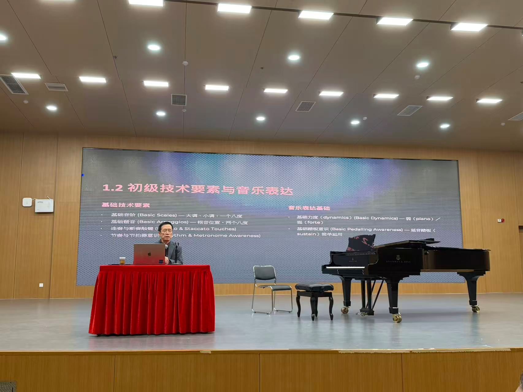 11月21日早九点,湖南师范大学音乐学院钢琴教研室在和乐楼四楼音乐厅以《穿越瓶颈:钢琴学习中的“断层”诊断与系统重构》为主题举办学术讲座,特邀美籍华裔钢琴家、音乐教育家卜劼教授主讲,聚焦钢琴学习瓶颈破解与国际教学理念交流,现场师生共探教学创新路径,钢琴系青年教师陈浩然主持此次讲座。