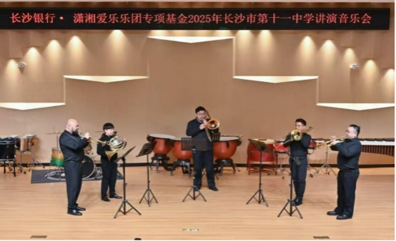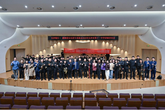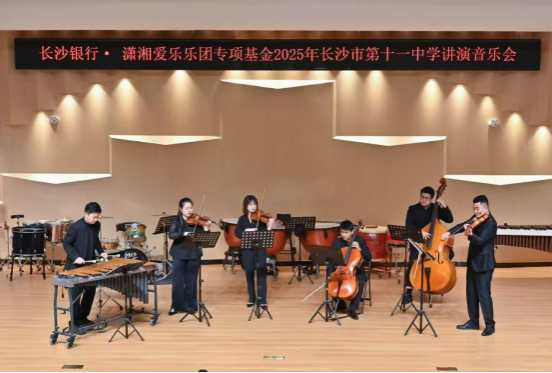 本次音乐会暨公益讲座,既是湖南师范大学音乐学院履行社会责任、推动高雅艺术进校园的重要举措,也是“长沙银行·潇湘爱乐乐团专项基金”支持艺术普及与教育事业的成果展现。特别感谢长沙市第十一中学的诚挚邀请与大力支持,为高校与中学间的艺术交流与美育共建提供了宝贵平台。在两校的携手努力与社会各界的共同关注下,美育的种子必将在更多年轻心灵中生根发芽,绚烂绽放,持续为新时代艺术教育与人才培养注入蓬勃活力。