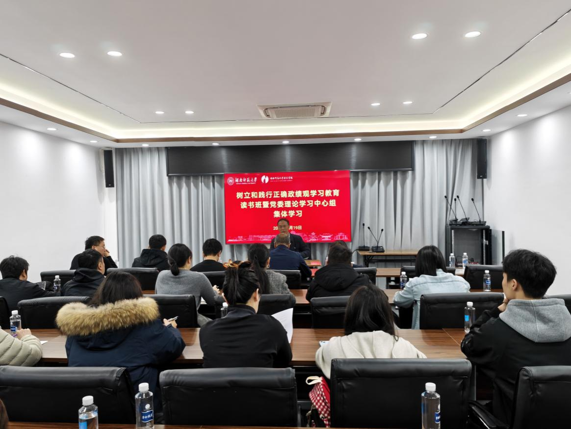 (通讯员:付爱萍)3月19日,音乐学院树立和践行正确政绩观学习教育读书班暨党委理论学习中心组(扩大)集体学习会在任弼时纪念馆举行。学院党委委员、系主任、各支部书记(第一书记)和行政支部全体党员参加学习。