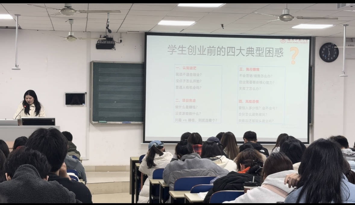 主讲人以“从校园到创业”为主题展开分享。她结合自己的实际经历,完整讲述了自己从萌生创业想法到创业成果落地的全过程。为了提供更具针对性的指导,她列举了一些同学们创业前常遇到的困惑,并据此归纳出六条关于择业和创业的六条实用原则。她指出,择业或创业的根基,在于想清楚“服务谁、提供什么价值”,由此出发,才能准确判断自己适合的职业方向。此外,她还为同学们解读了学校的创业扶持政策,帮助大家学会利用政策资源扫除创业障碍,明确发展路径。参与讲座的同学们纷纷表示,自己对校园创业路径有了更清晰的认知,也更加切实地感受到了创业的实际意义。