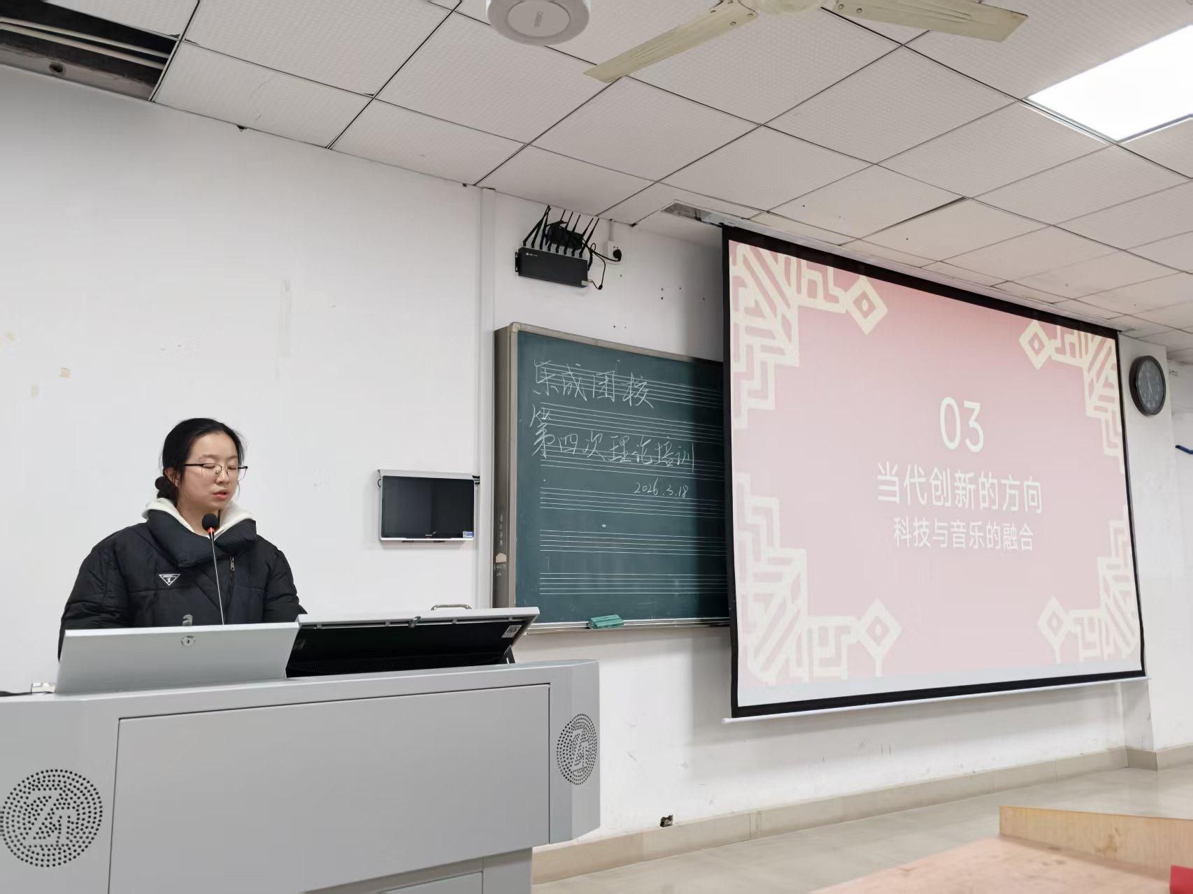 (通讯员 唐安雅 黄思涵 蔡雅丞)2026年3月18日中午,音乐学院“乐成团校”在和乐楼202教室举办第四次理论培训课。本次课程由学院团委宣传部负责人魏子瑄担任主讲人,学院各团学组织成员共同参与学习。