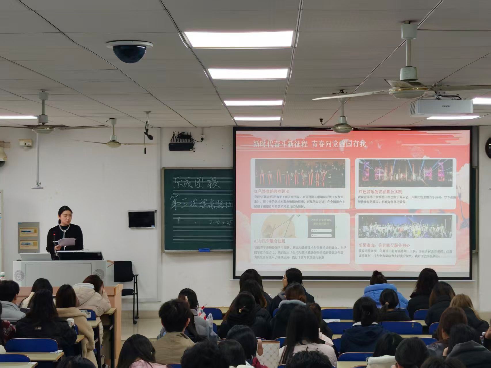 (通讯员 唐安雅 黄思涵 蔡雅丞)2026年3月25日中午,音乐学院“乐成团校”在和乐楼202教室举办第五次理论培训课。本次课程由院团委书记兼2022级辅导员李思达担任主讲人,团校理论培训班全体成员共同参与学习。