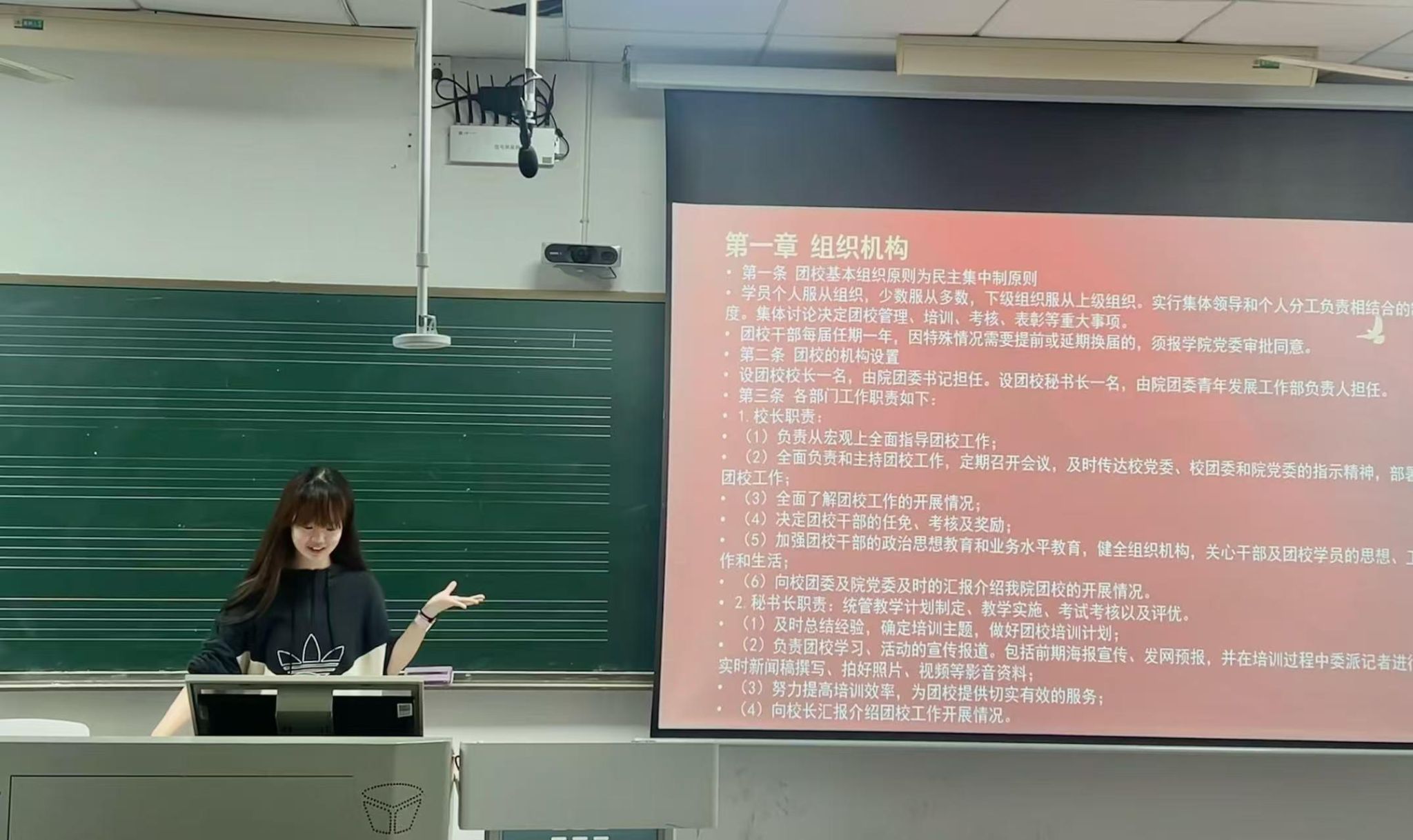 本次学习围绕《总则》展开,重点对团校的组织机构、工作制度、学员权利义务以及教学管理规范等内容进行了逐条解读。学习过程中,主讲人结合往期团校运行中的实际案例,对学员考勤纪律、结业考核标准、评优推优条件等关键条款作了详细说明,帮助全体学员准确把握团校管理的各项要求,明确自身在培训期间应遵守的规范和应履行的职责。