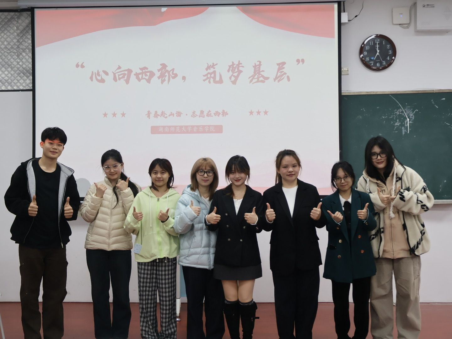 (通讯员 唐安雅 陈潇江 刘典)为深入宣传西部计划志愿服务精神,引导广大青年学子厚植家国情怀,明晰基层志愿服务发展机遇,2026年04月22日,湖南师范大学音乐学院青工部开展了一场主题为“心向西部,筑梦基层”的西部计划宣讲会。